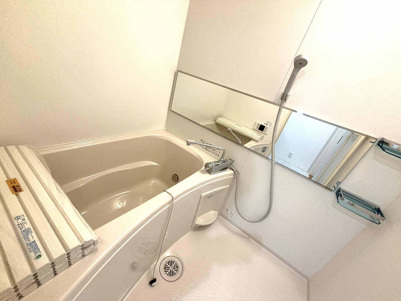 オートロック(予定)、バストイレ別、浴室換気乾燥機、温水洗浄暖房便座、独立洗面台、室内物干し、システムキッチン、IHコンロ(3口)、追焚機能バス、ウォシュレット、宅配ボックス、インターホン、二階以上、インターネット無料、駐輪場