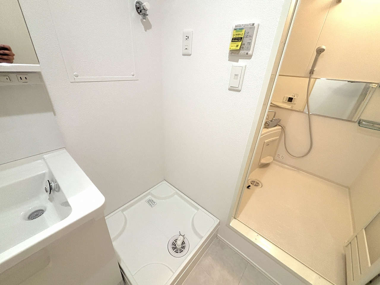 オートロック(予定)、バストイレ別、浴室換気乾燥機、温水洗浄暖房便座、独立洗面台、室内物干し、システムキッチン、IHコンロ(3口)、追焚機能バス、ウォシュレット、宅配ボックス、インターホン、二階以上、インターネット無料、駐輪場